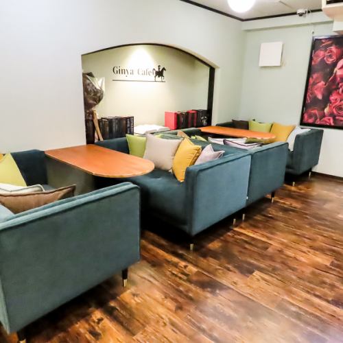 少人数利用にも最適なぎんやcafeでは、グリーンで統一されたソファ席が並び、ふんわりとした座り心地で特に女性に人気を集めています★おひとり様でもゆったりと過ごせる席配置と、静かな住宅街の立地がプライベート感を高めます◎本や花など細部にもこだわったインテリアで、落ち着いた時間を過ごせます♪